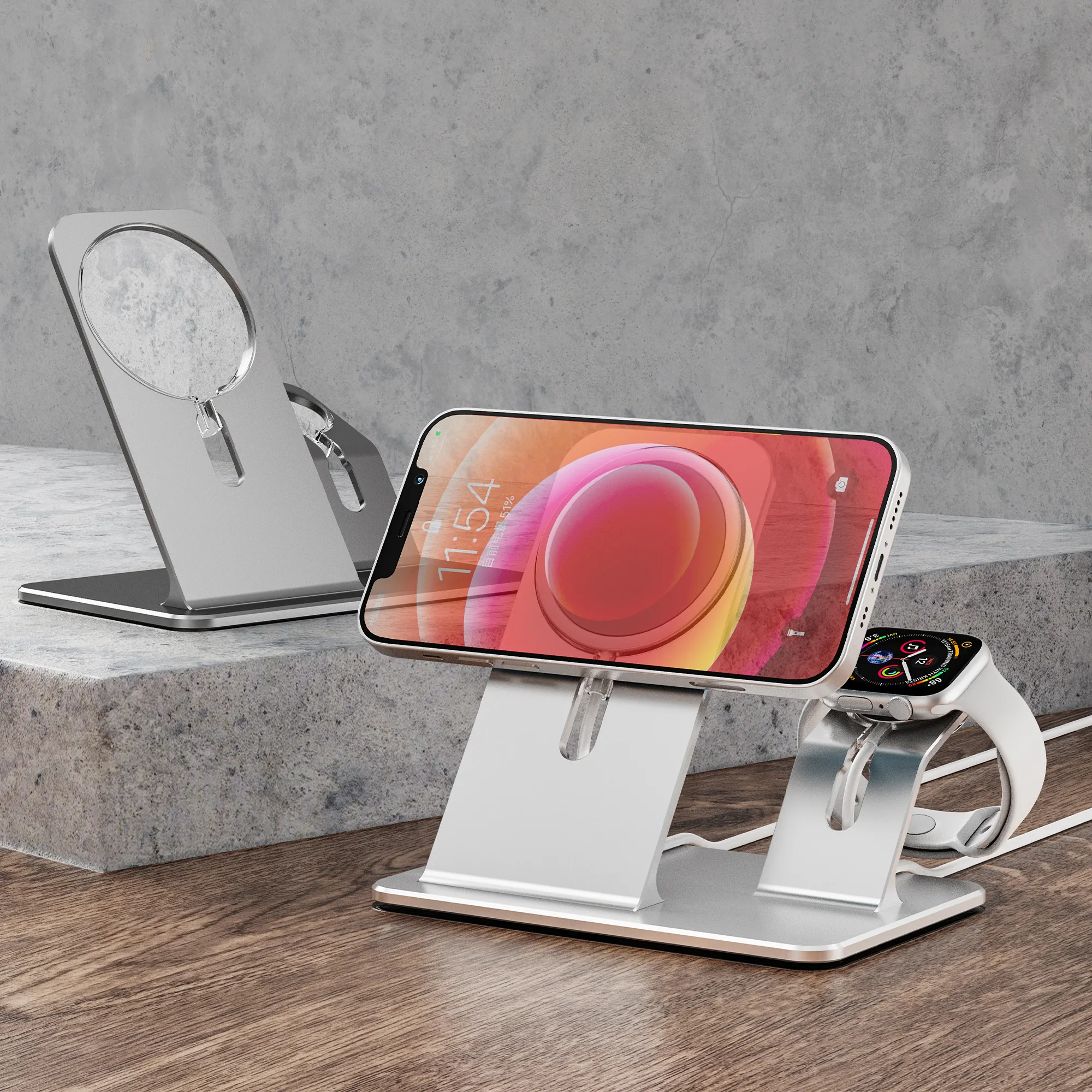 New Trending Desktop destacável liga de alumínio carregamento celular Stand Mobile Phone Holder para iPhone Watch
